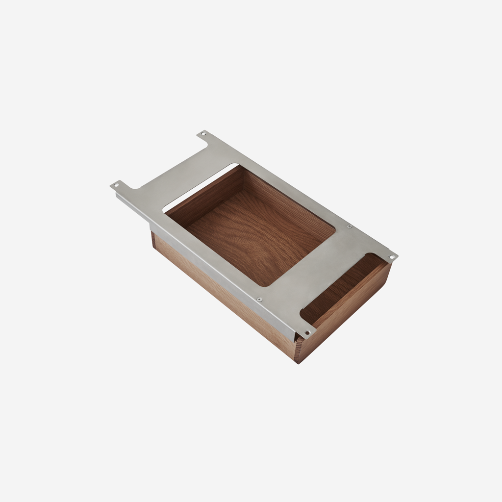 Made from solid walnut or light oak, this attachable drawer is a simple upgrade with a big impact. Easy to mount and built to last, it brings both character and functionality to your work space.