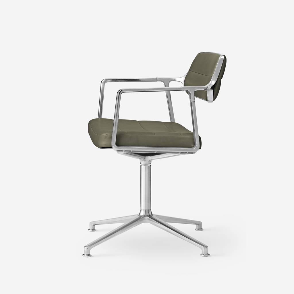 Vipp introduces a new chair to its Swivel series by combining the comfort of the Vipp453+ chair with the four-legged base of the Vipp452 chair. The extra padded iteration of the original Swivel chair is intended for both residential and conference room settings, where people sit for extended periods of time, offering a larger backrest and a highly comfortable seat.