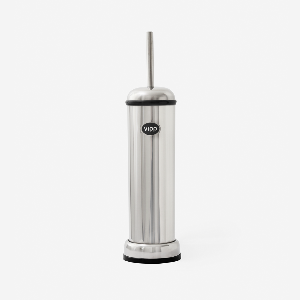 A necessary tool for the bathroom, the Vipp toilet brush has a clear kinship with the Vipp pedal bin. A rubber ring at the top of provides air-tight closure and the brush head and inner tube can be replaced, thereby avoiding unnecessary waste.